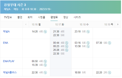 9월 19일부터 시작된 강철부대 시즌 3는 채널A, ENA, ENA PLAY, 채널A플러스에서 강철부대 시즌 3 재방송을 다시볼 수 있습니다.