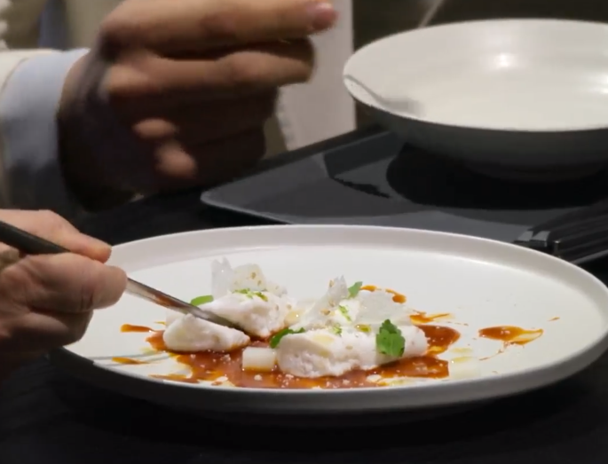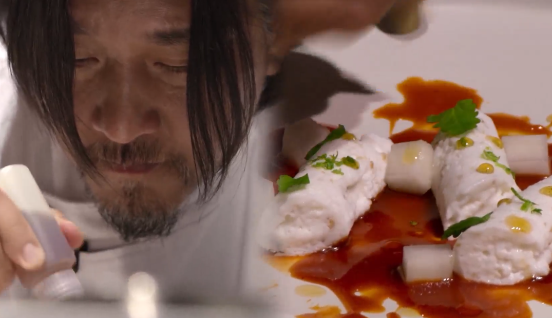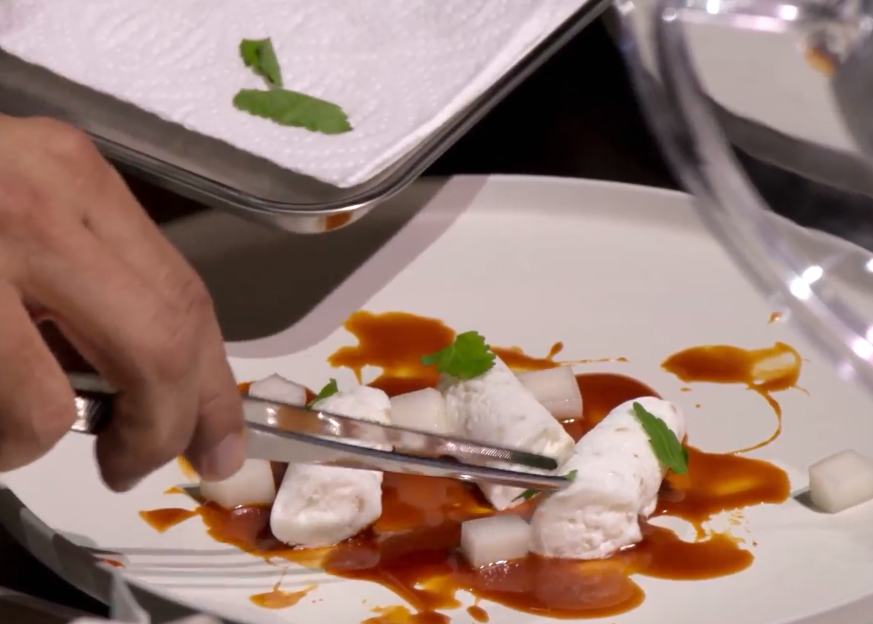 떡을 삶아서 갈아서 얼립니다. 그리고 고추장을 이용해서 소스를 만들었습니다. 얼린 주재료가 얼어야만 완성할 수 있는 요리입니다. 그래서 보는 사람들의 손에 땀이 나게 합니다. 그 맛이 어떨지 모두가 궁금해하며 지켜보고 있습니다. 백수저 애드워드 리가 만든 디저트는 과연 두 심사위원 모두의 입맛을 사로잡을 수 있을 지 궁금합니다.